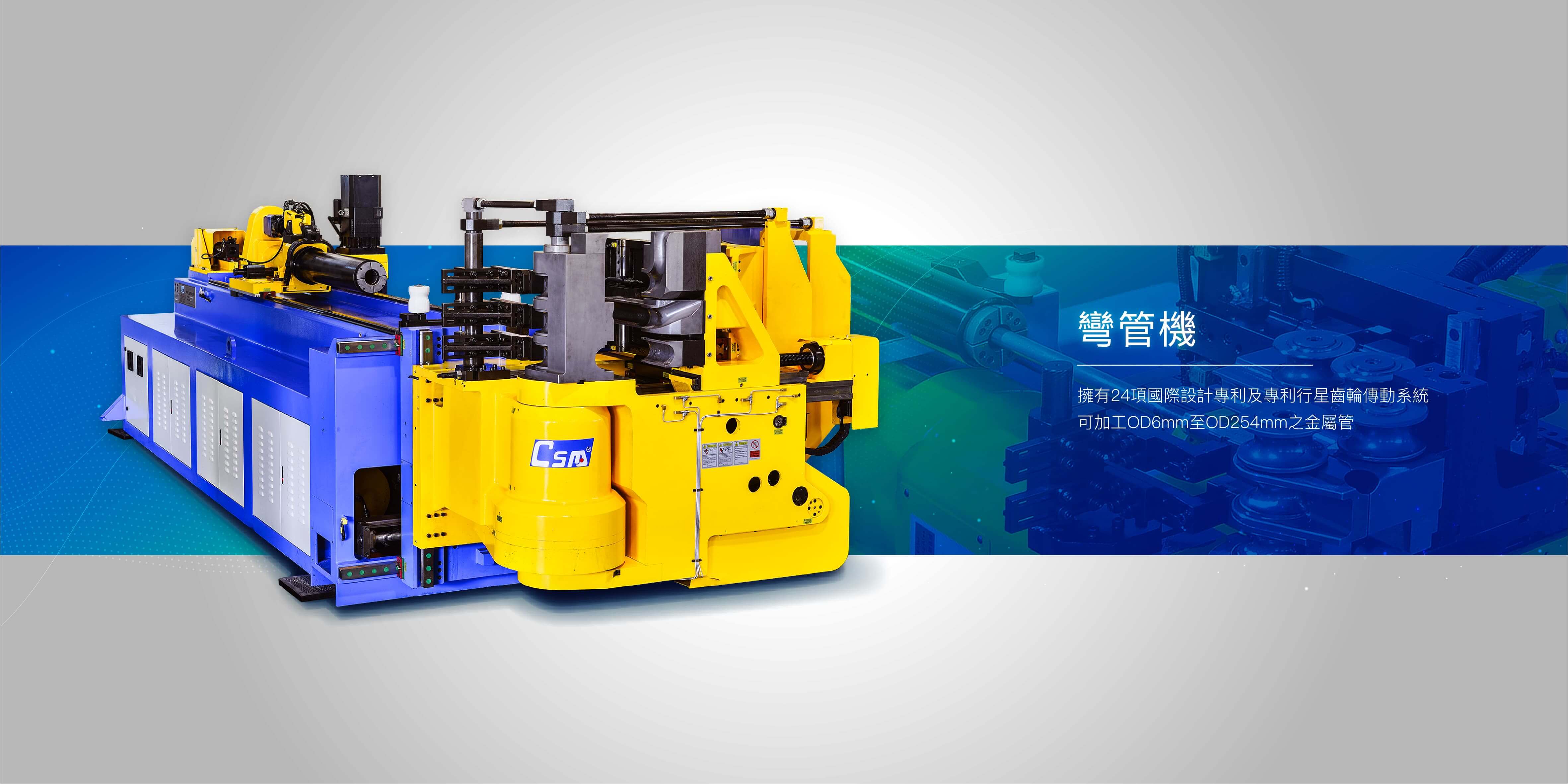 CNC彎管機採用專利之行星齒輪傳動系統,可加工OD 6~254 mm之金屬管件。