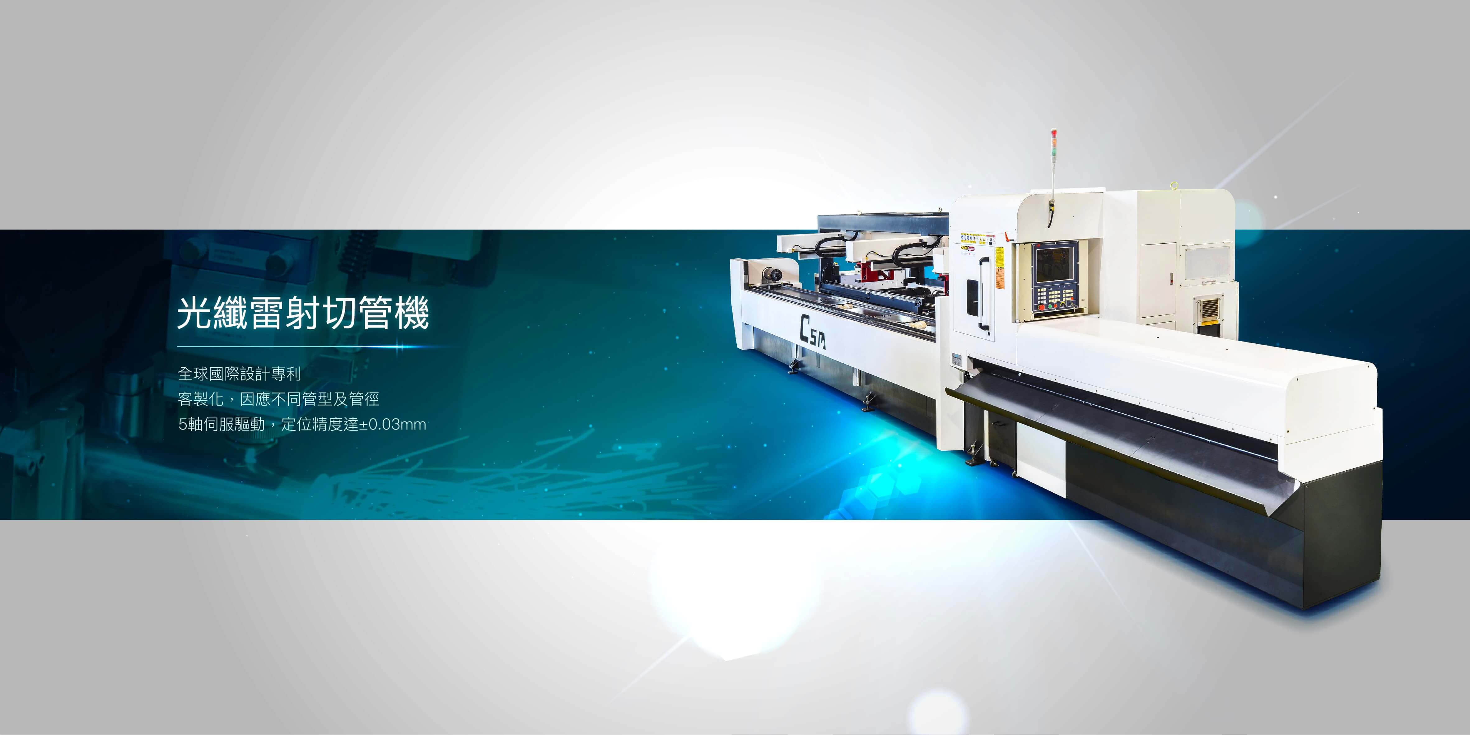 光纖雷射切管機擁有國際設計專利,5軸同動,定位精度達±0.03mm。